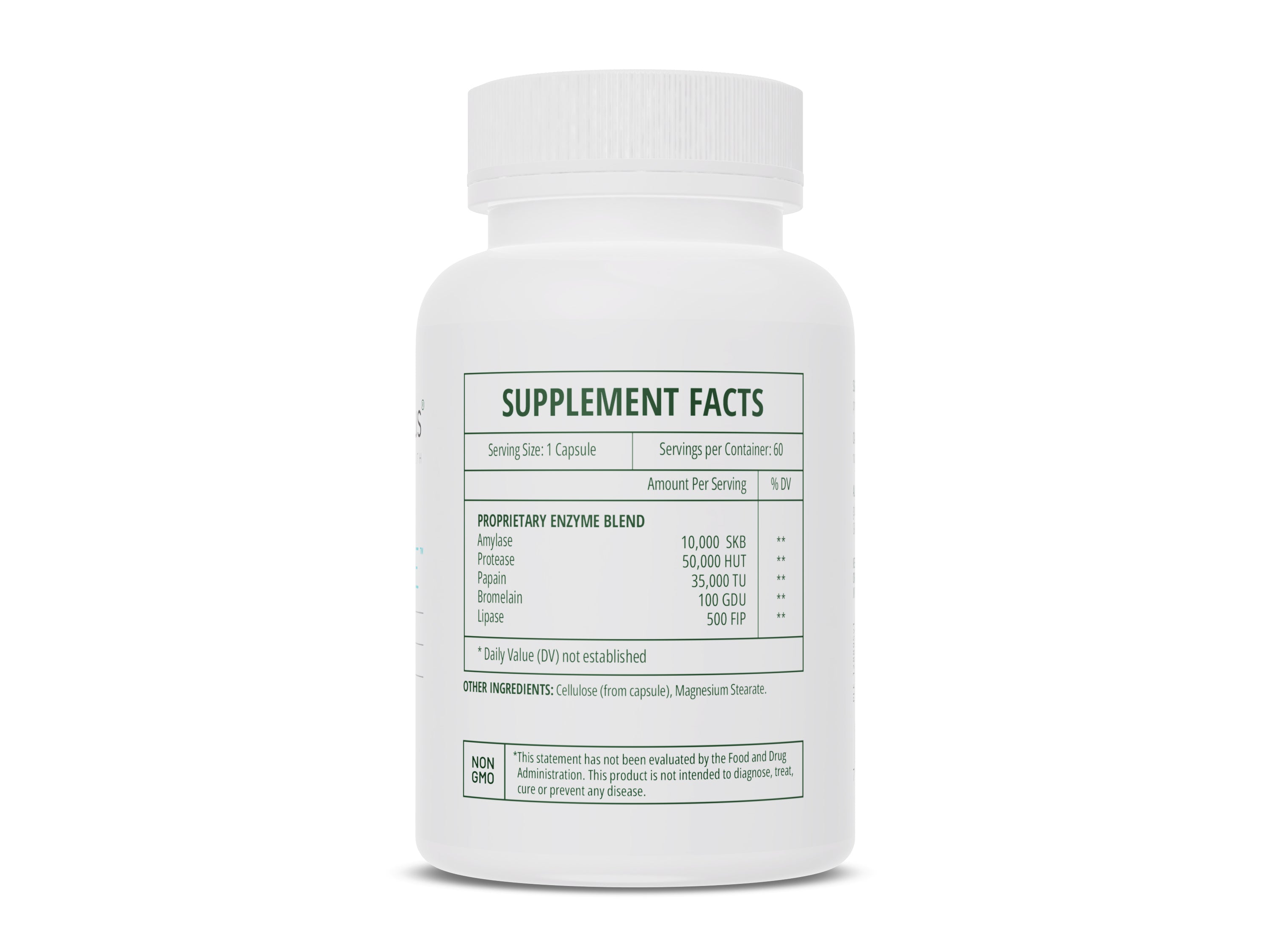 Proprietary Enzyme Blend: Amylase, Protease, Papain, Bromelain & Lipase