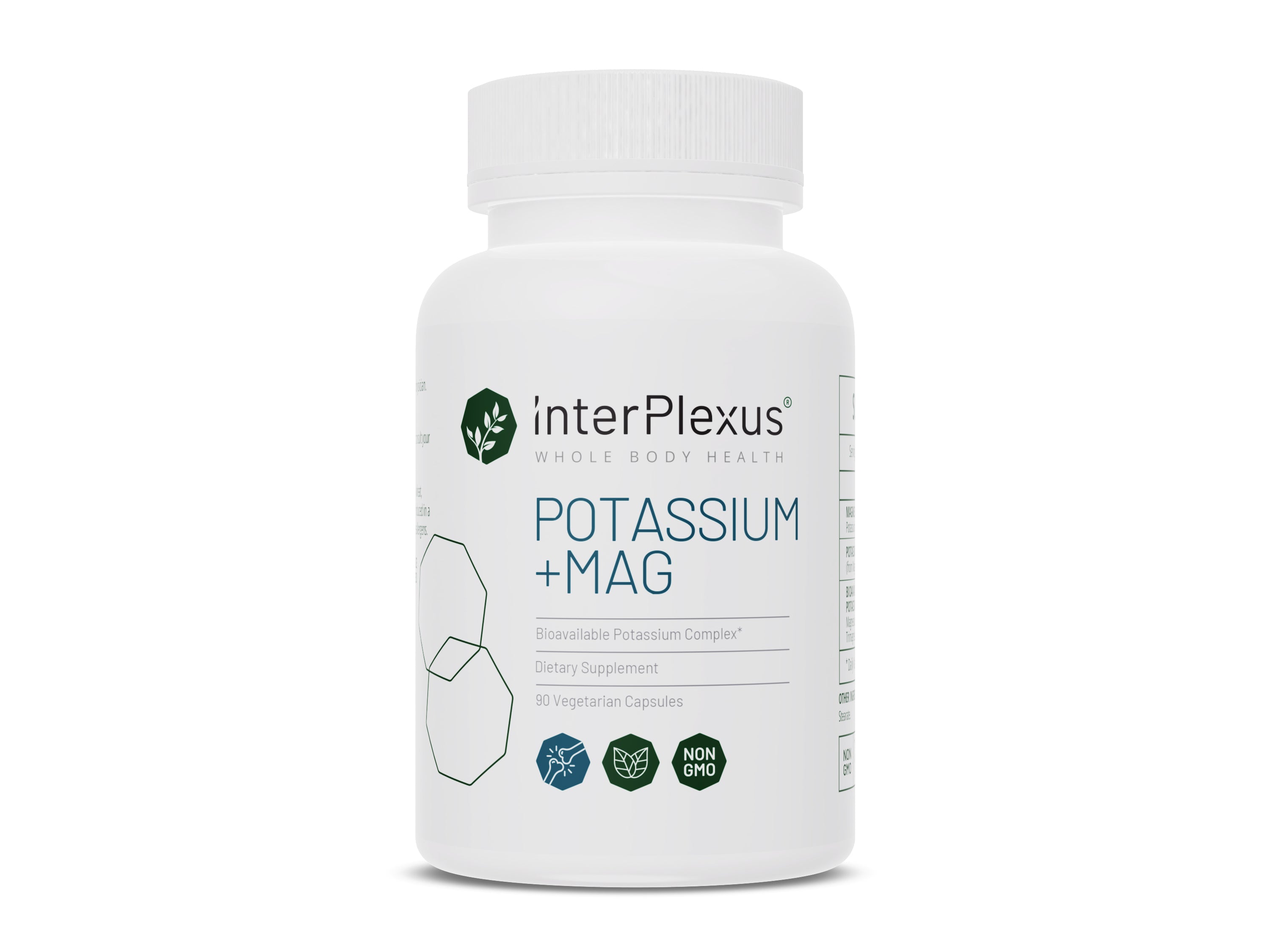 InterPlexus Potassium+Mag is formulated with a bioavailable potassium magnesium complex for healthy musculoskeletal structure and function, cardiovascular function, and nervous system function.*